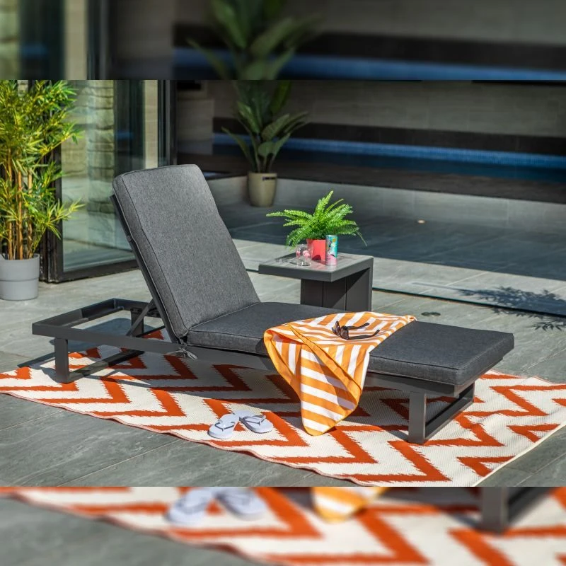 This Hartman lounger from the Cosmopolitan range is a beautiful, simplistic outdoor lounger that brings style to your outside space. The exquisite Cosmopolitan sun lounger can lay flat or be raised in 4 different positions for the ultimate level of comfort. This lounger features the Hartman luxurious slate coloured cushions that are complete with permeable Weatherready® technology that offers reassurance throughout the summer showers. The slate coloured cushions are paired with the stunning Matt Xerix coloured strong & durable aluminium frames that bring a modern twist into your outdoor space.