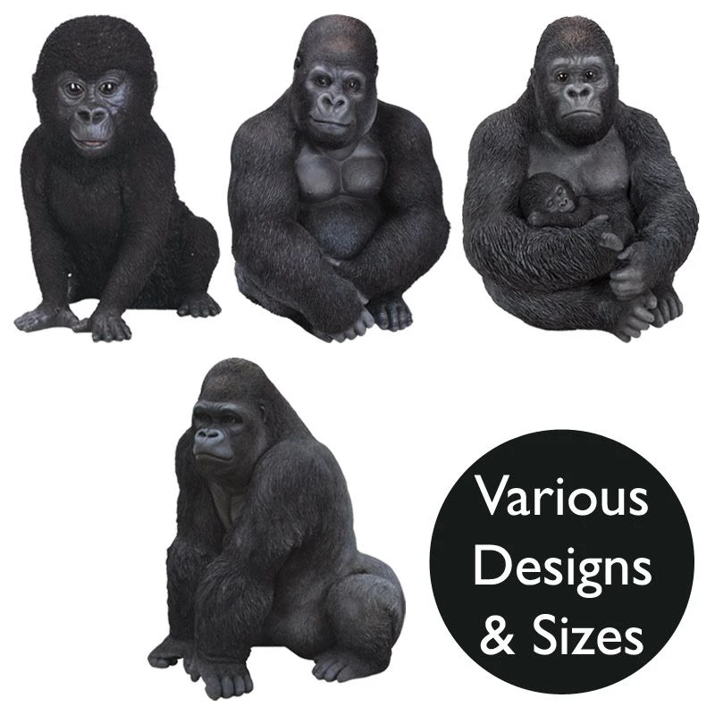 Bring a jungle feel to your home or garden with these real life gorilla statues from Vivid Arts. These durable resin garden ornaments are frost resistant and can be displayed both indoors and outdoors. They come in in a range of designs and sizes, including baby and adult gorilla ornaments.